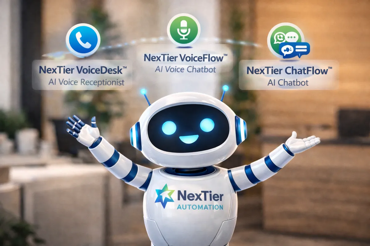 NexTier Automation provides an intelligent AI-powered conversation system designed to handle calls, voice interactions, and messages across all major customer touchpoints — so your business captures every opportunity without adding staff or increasing workload.