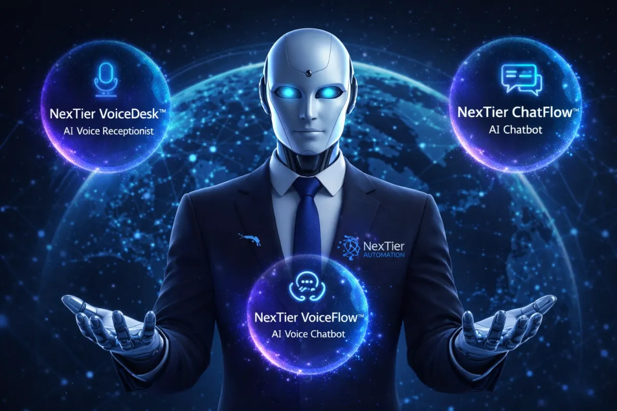 Together, NexTier VoiceDesk™, VoiceFlow™ and ChatFlow™ work as one unified AI system — capturing leads, booking opportunities, and recovering lost revenue 24/7.